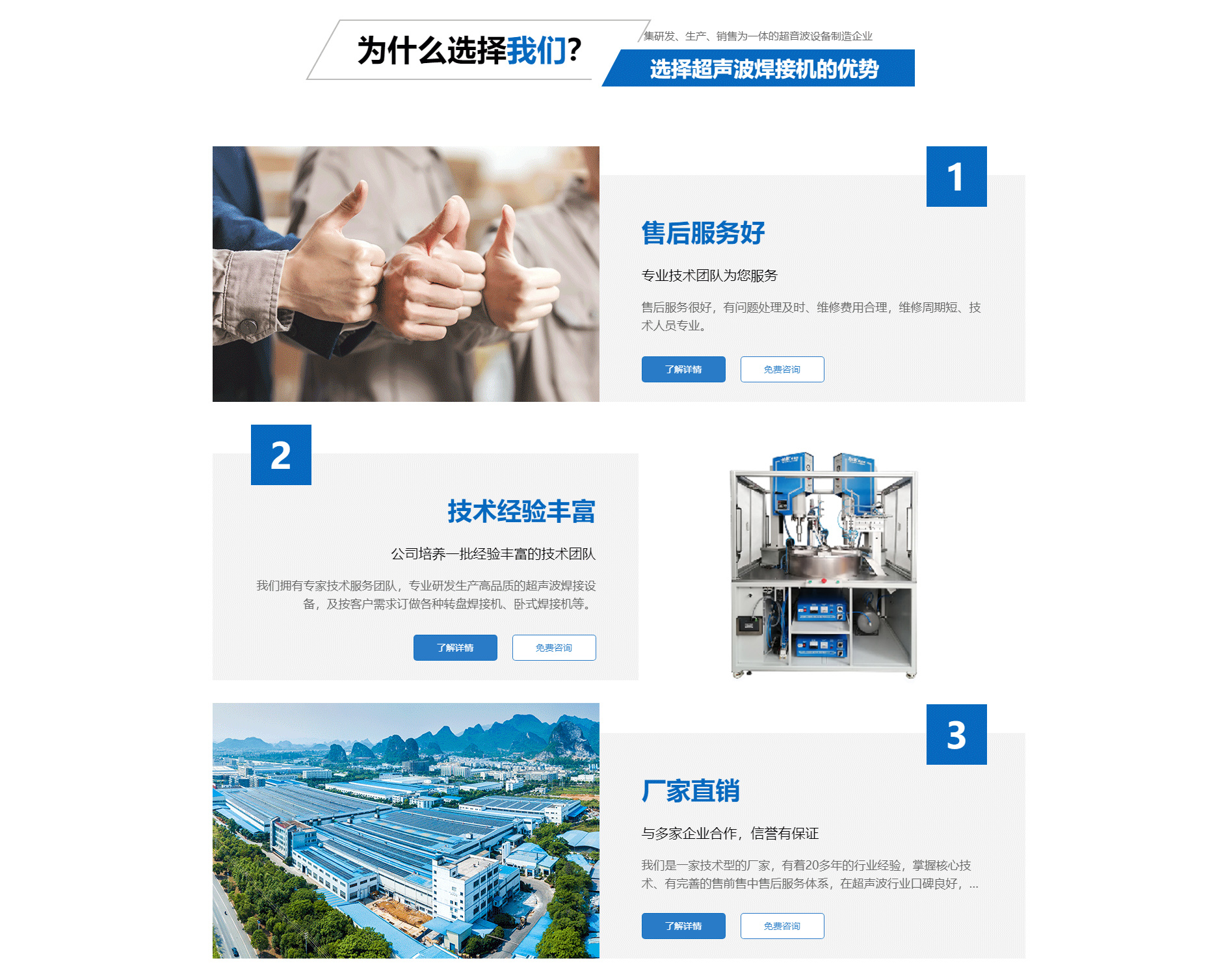 廈門(mén)勁榮機(jī)械設(shè)備有限公司是一家集研發(fā)、生產(chǎn)、銷售為一體的超音波設(shè)備制造企業(yè),主要產(chǎn)品包括多規(guī)格型號(hào)的超音波塑膠熔接機(jī)、熱板式塑料焊接機(jī)、多工位轉(zhuǎn)盤(pán)焊接機(jī)、振動(dòng)摩擦焊接機(jī)、旋轉(zhuǎn)式塑膠熔接機(jī)及配套的工裝夾具等。公司自2003年成立以來(lái),一直致力于產(chǎn)品不斷完善中,并追求產(chǎn)品的精益求精,于2004年向國(guó)家商標(biāo)局注冊(cè)了“勁榮”牌商標(biāo),2009年榮獲廈門(mén)市商標(biāo)。 經(jīng)過(guò)多年的努力,公司已經(jīng)發(fā)展成為占地面積2000余平方米、擁有員工50余人的企業(yè)。公司一直將“品質(zhì)是企業(yè)發(fā)展的原動(dòng)力”作為經(jīng)營(yíng)理念,嚴(yán)把質(zhì)量關(guān),建立了一整套有效的安全生產(chǎn)及管理模式,不僅贏得了同行的認(rèn)可,更取得了客戶的信賴,先后與九牧集團(tuán)、路達(dá)工業(yè)、建霖集團(tuán)、西伯電子、蒙發(fā)利實(shí)業(yè)、松霖科技、銥科集團(tuán)、科司特電子等公司建立了長(zhǎng)期的合作關(guān)系。 面對(duì)已經(jīng)取得的成績(jī),我們不驕不滿,因?yàn)樯钪獦I(yè)績(jī)只能代表過(guò)去,只有靠良好的產(chǎn)品質(zhì)量和完善的售后服務(wù)才能在客戶中口碑相傳,在...